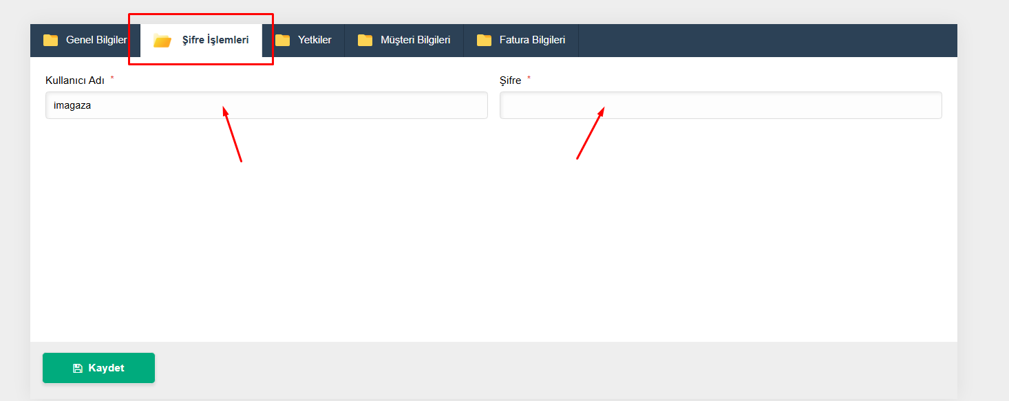 Açılan sayfanın üst sekmelerinde Şifre İşlemleri sekmesine tıklayın.
