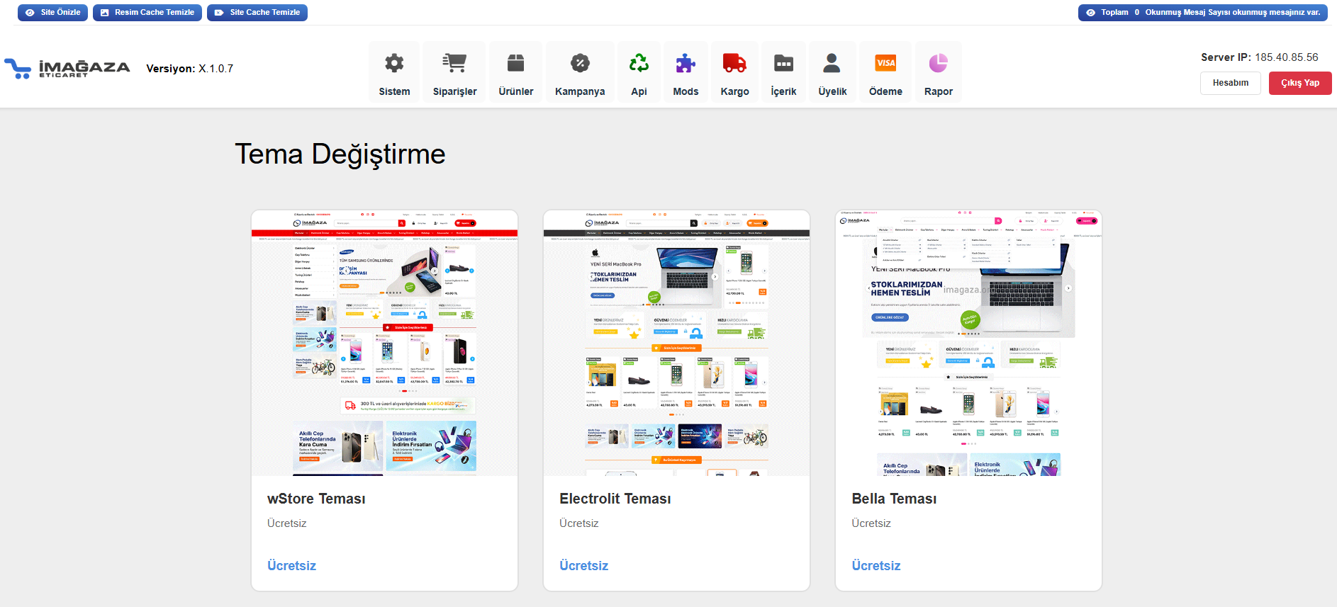 Sistemde kullanabileceğiniz yüklü olan temaların listesini görebilirsiniz. Temanın üzerine geldiğinizde Önizleme veya Aktif Et butonlarından temanızı kullanabilirsiniz.