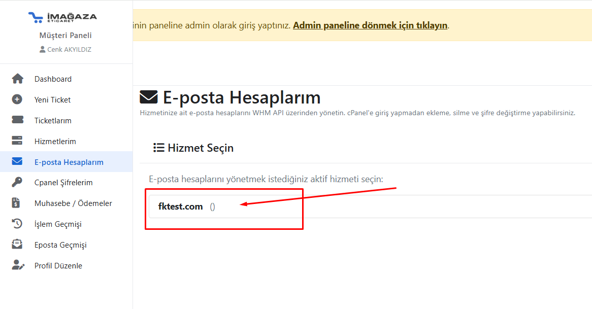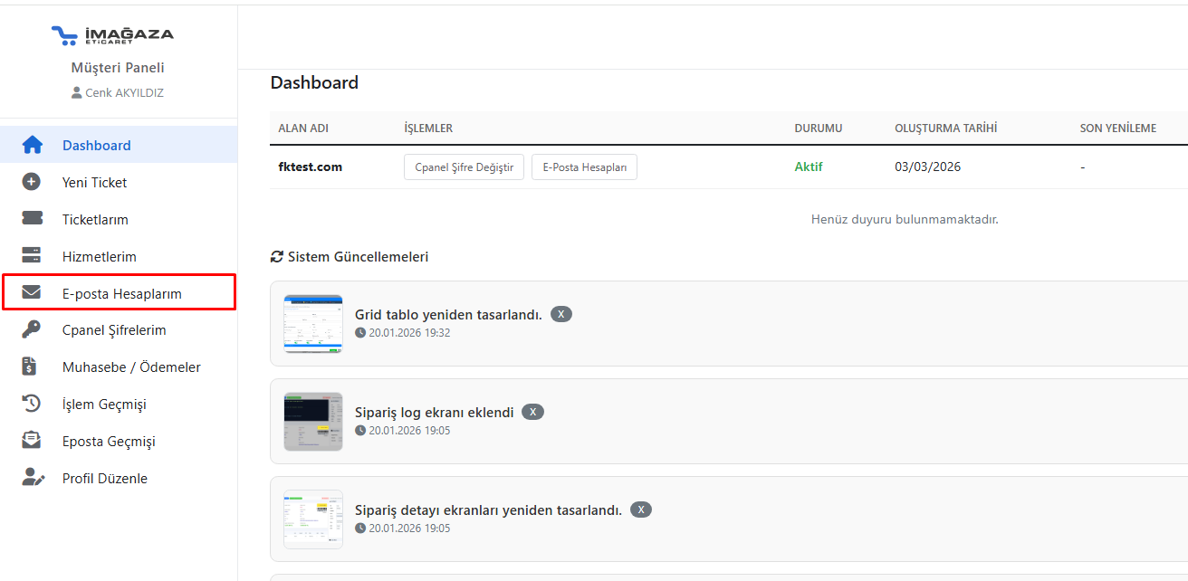 Adım 1 : iMağaza Müşteri Panelinize Giriş Sağlayın