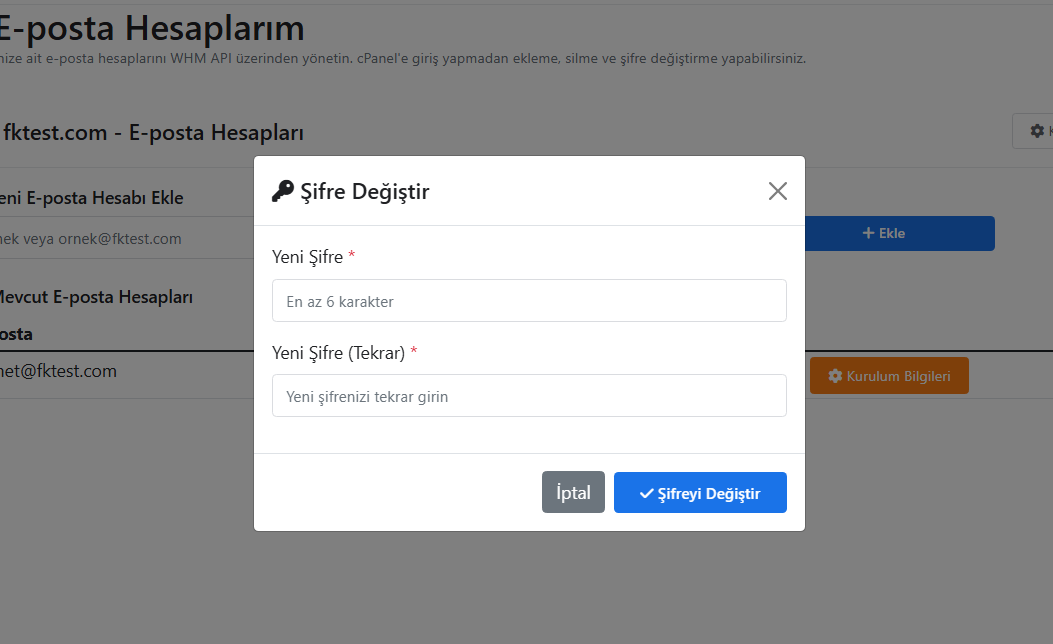 Yeni E-posta Hesabı Şifre Sıfırlama
