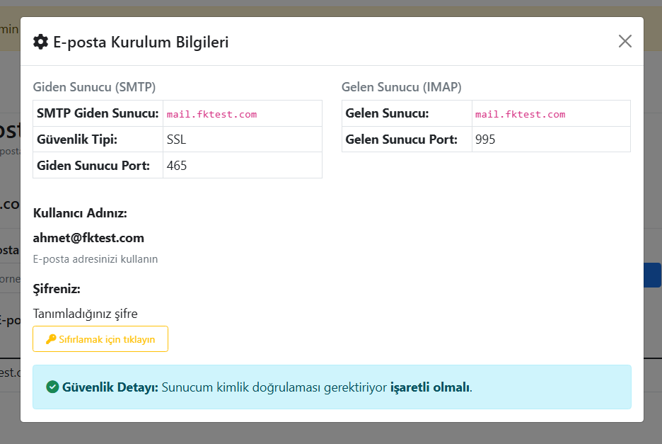 Adım 6 : Eposta Ayarlarınızı Tekrar Görmek İçin